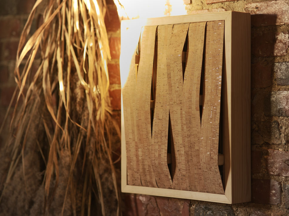However, the available veneer was too thick and brittle, and time constraints ruled out ordering materials online. After considering various fabrics for a softer texture, cork textile was ultimately chosen for its natural look, durability, and flexibility. This material allowed the final piece to reflect the calming essence of nature while seamlessly integrating into a modern living room space.